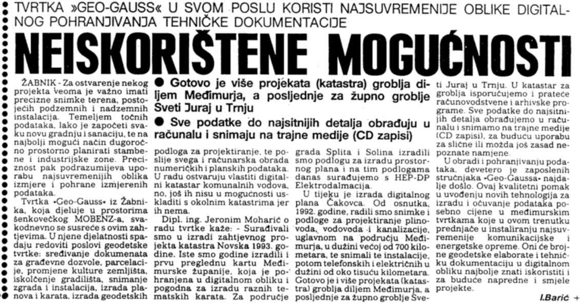 U Večernjem listu 1999. godine, predstavljeno je naše poduzeće ...
